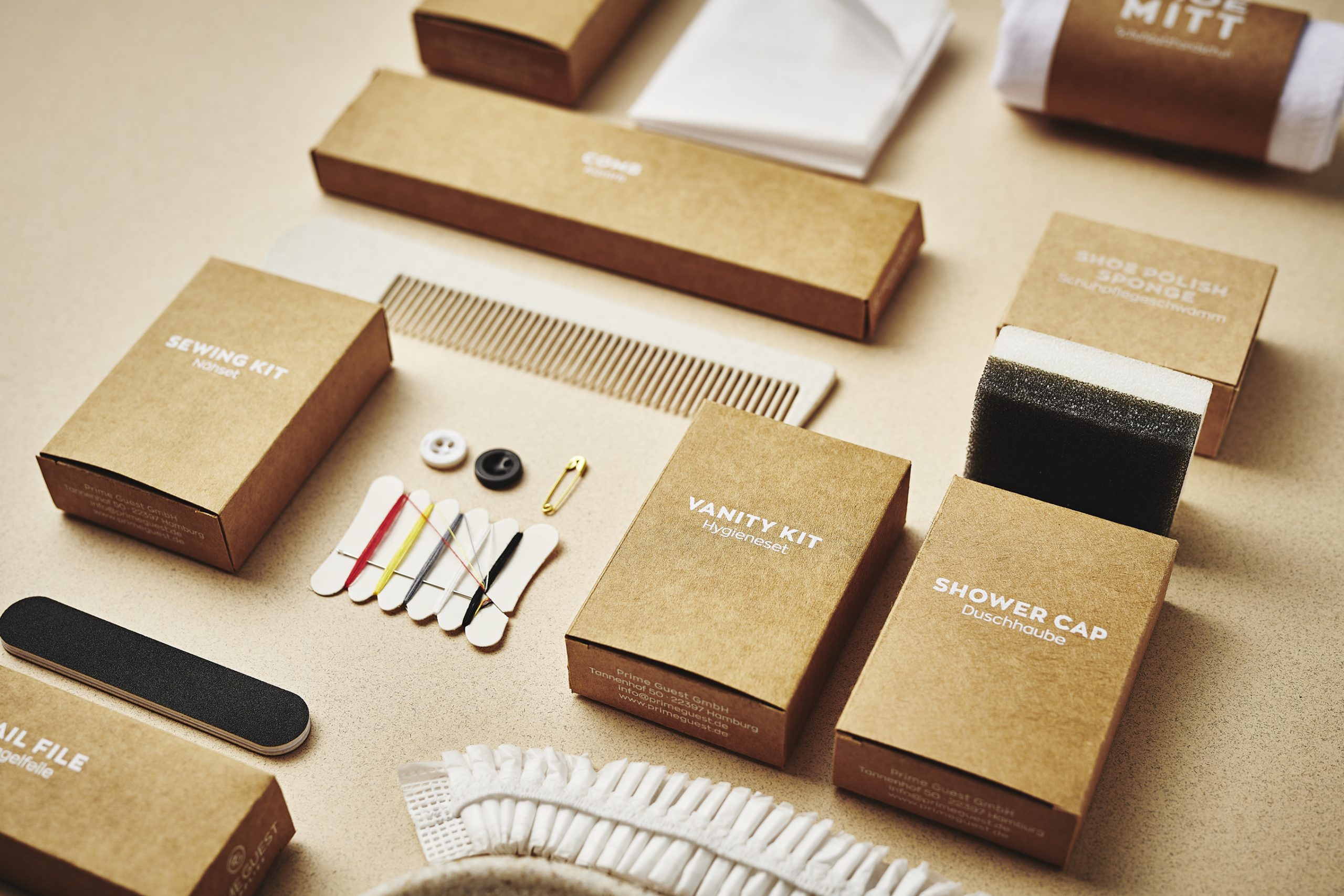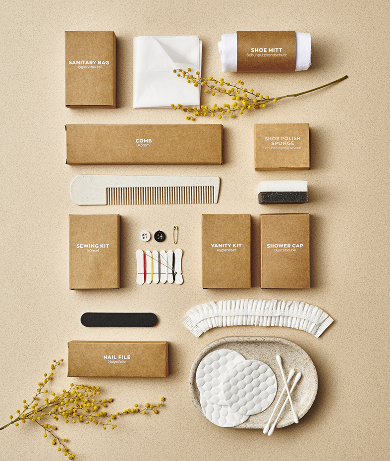 Unser Sortiment umfasst alle klassischen Guest Supplies – von Hygiene-Sets und Duschhauben